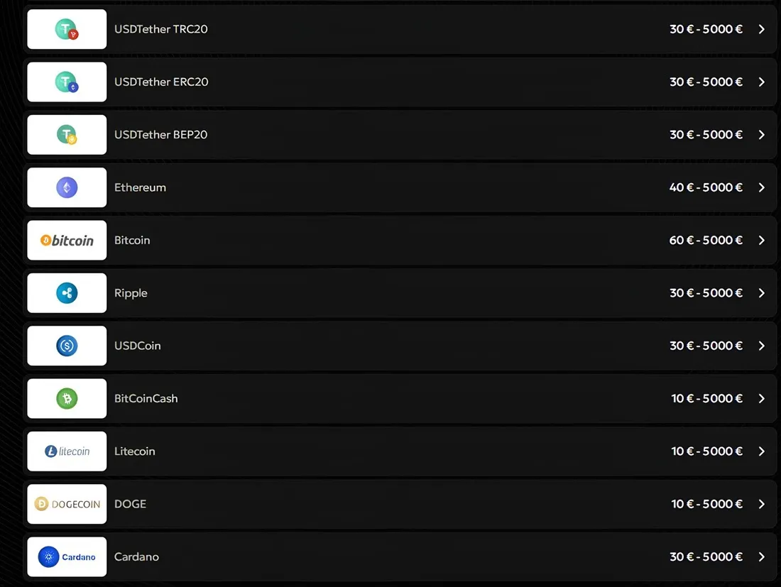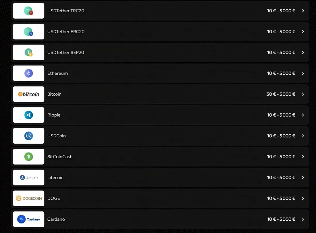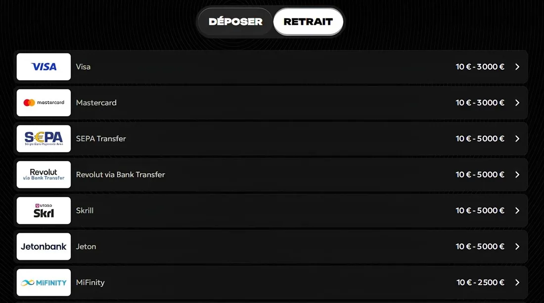 On constate que le casino en ligne les a particuliĂšrement Ă©toffĂ©es, puisquâil accepte les cartes bancaires, le virement, les cartes prĂ©payĂ©es (comme PaySafeCard), les portefeuilles Ă©lectroniques et une grande variĂ©tĂ© de crypto-monnaies.