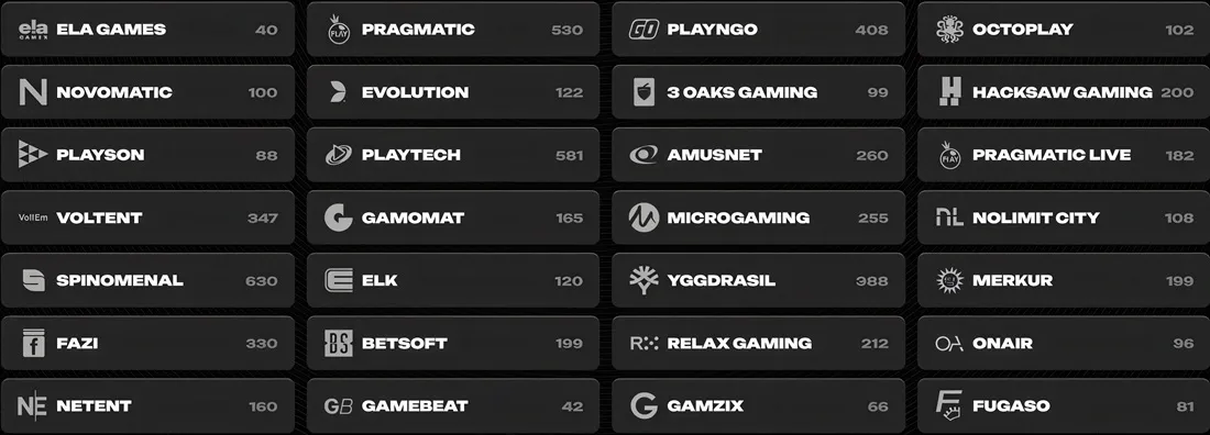| Développeur(s) des jeux | PrÚs de 50 fournisseurs, dont Evolution, Playtech, Octoplay, Hacksaw, Playson, Felix Gaming, Spribe, Blueprint, Onetouch, Mascot, Galeta, Bombay Live, Amatic, Big Time Gaming⊠|